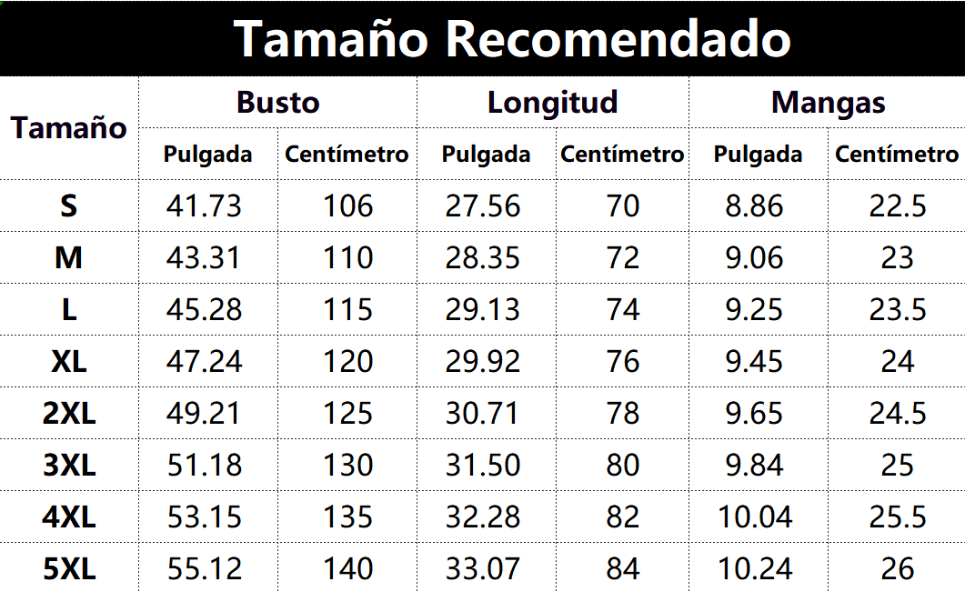 • Longitud de la manga: Manga corta